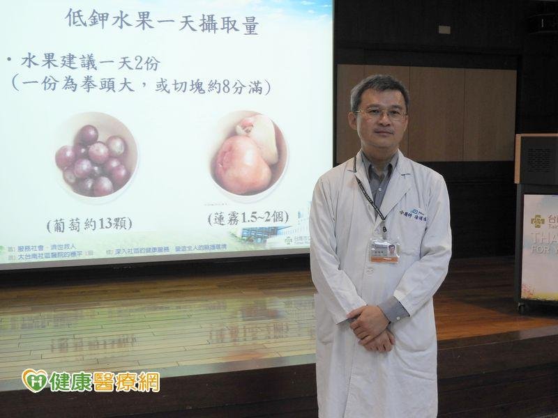 徐碩鴻醫師提醒,血液透析患者要減少鉀的攝取,不吃生菜、精力湯、麥草汁;蔬菜清燙3~5分鐘再拌油;避免飲用茶、咖啡、果汁、中藥湯汁;少喝雞精、牛肉湯、魚湯、排骨湯、火鍋湯、高湯等肉類湯汁;勿使用低鈉鹽或健康鹽;避免高鉀水果,中、低鉀水果適量選用,建議水果量一天不超過兩顆棒球的份量,也要了解服用的藥物種類。 (徐碩鴻醫師 - 台南市立醫院腎臟科主任)